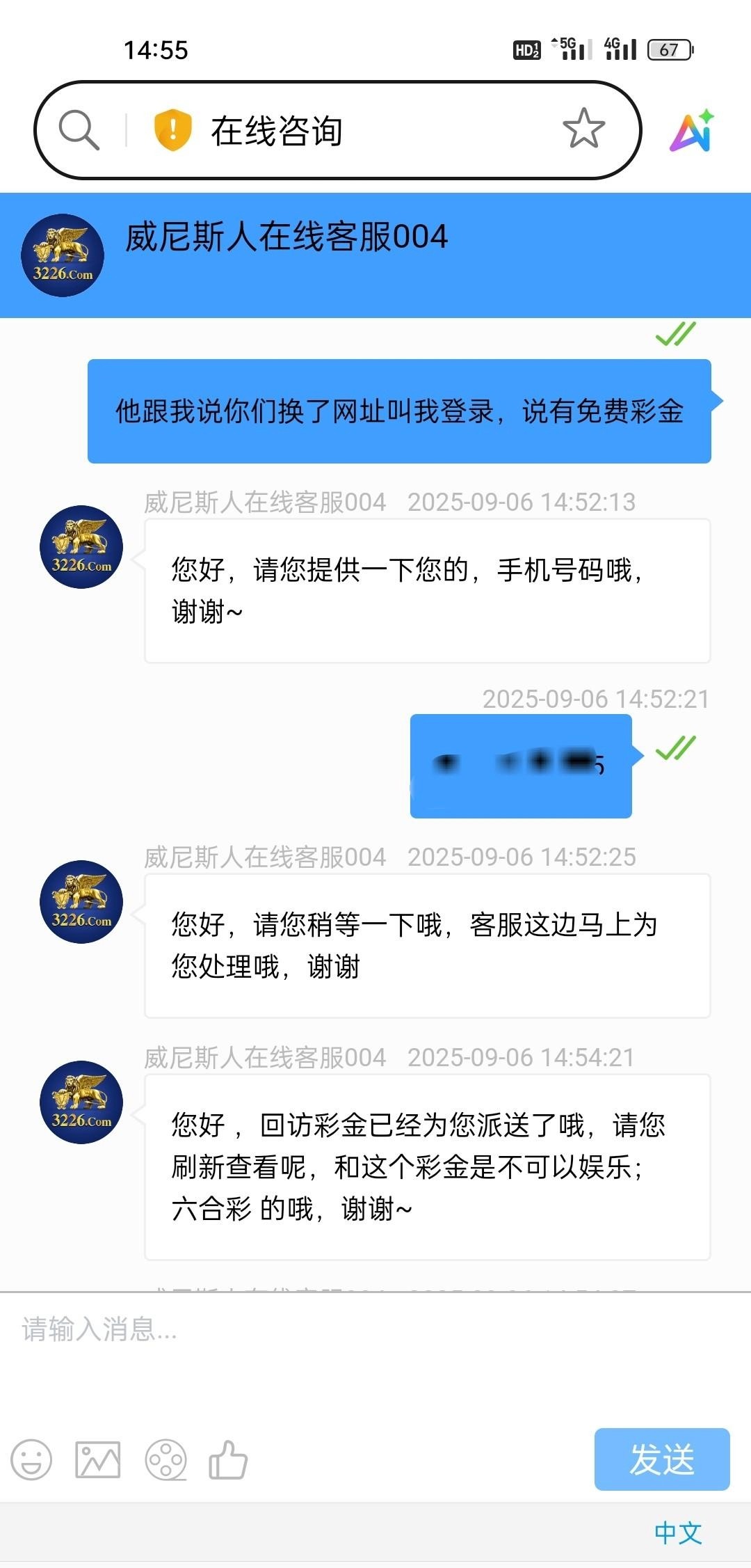 【威尼斯3226】—✅—电话彩金