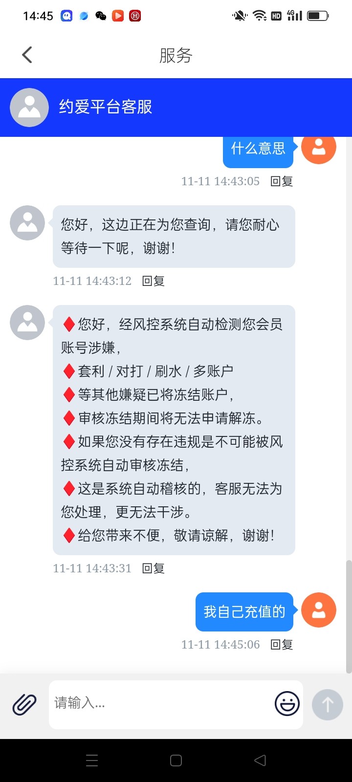 黑逼台子发你买的逼充值一百打四百多不给提说我套利