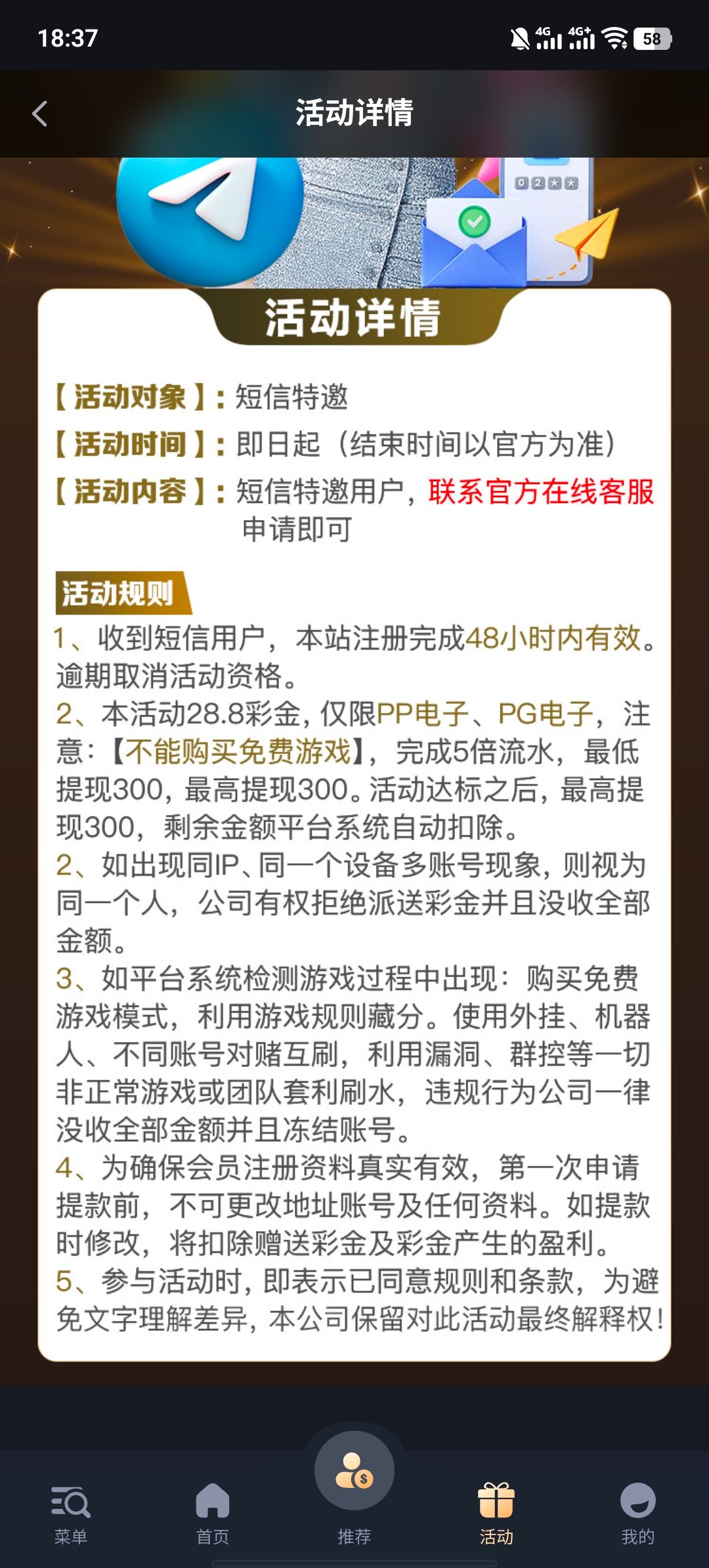 新用户注册联系TG或者JPAI专员申18.8/300提,收到短信的可以去申请特邀彩金28.8,彩金限制自行查阅网站咨询客服