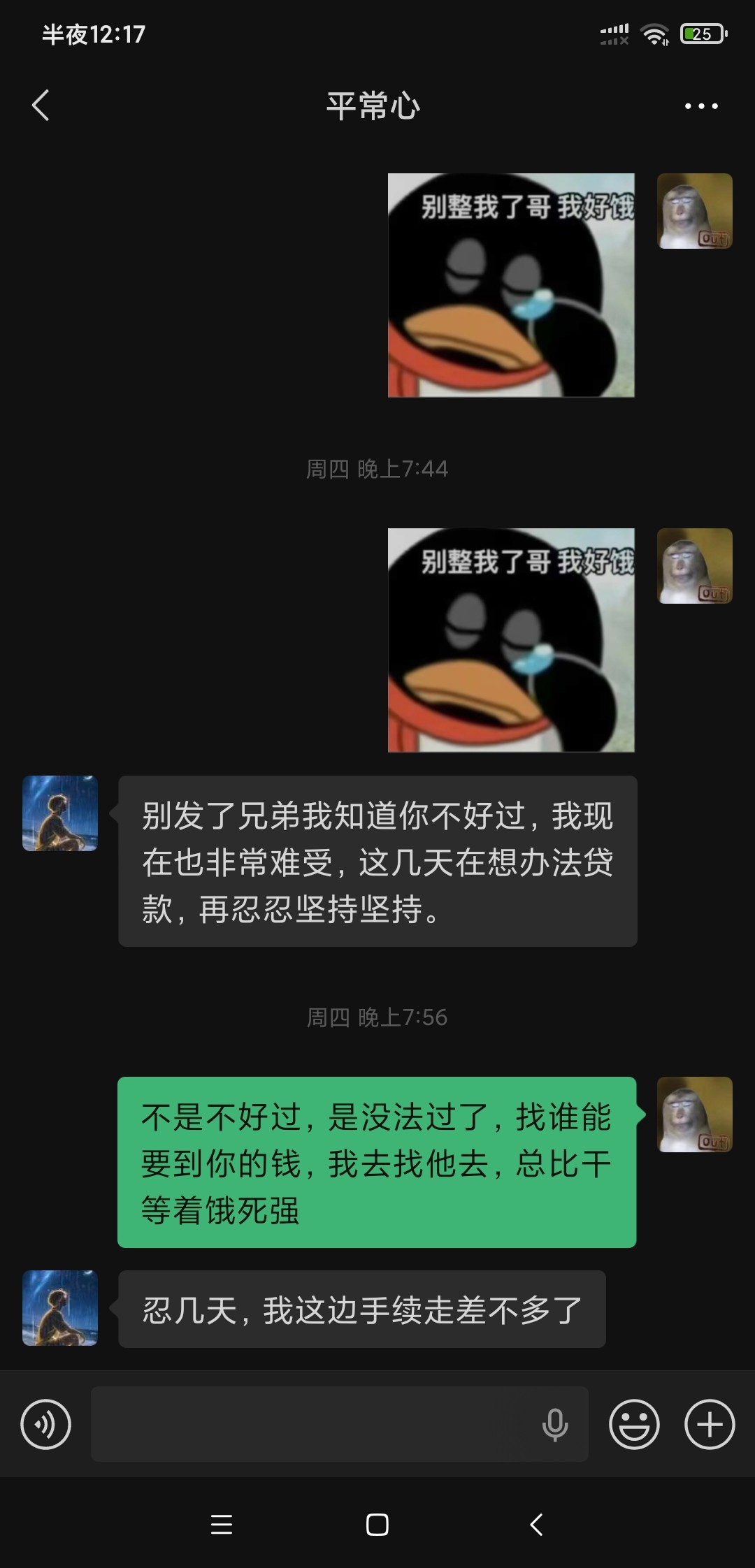 消息也不回了,回消息就是过几天这几天,然后就是给不出来,兄弟们这种是不是打定主意不还了