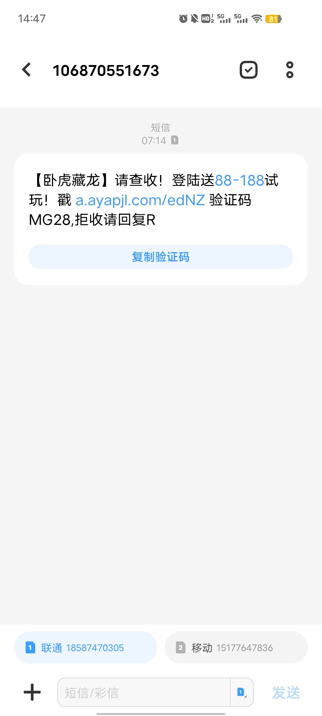 就是大家有没有收到1068开头短信里面的内容是网赌链接有的话可以赚点外快 55分、总累计下来撸这个赔付也有一万以上了