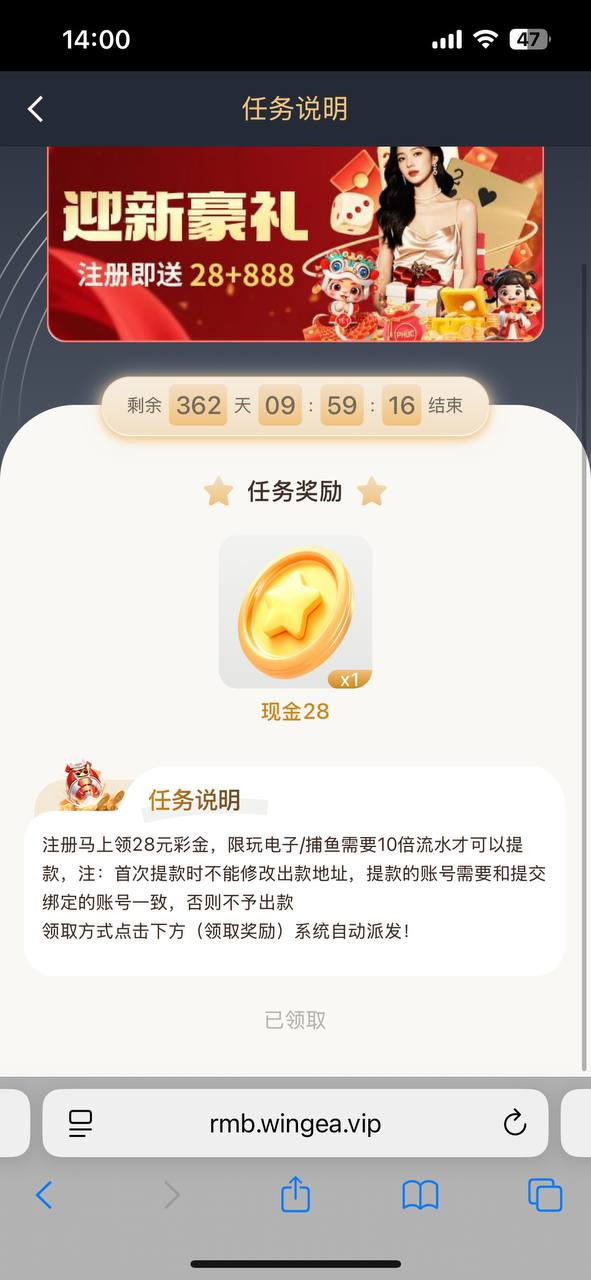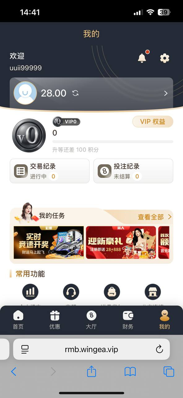 注册打开个人中心有我的任务里面有个注册送28元绑定银行卡就可以领取