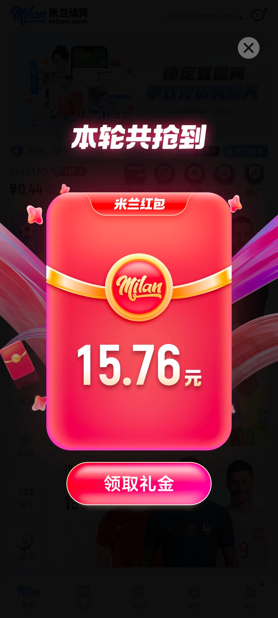 milan.com 米兰每天重要赛事都有红包雨