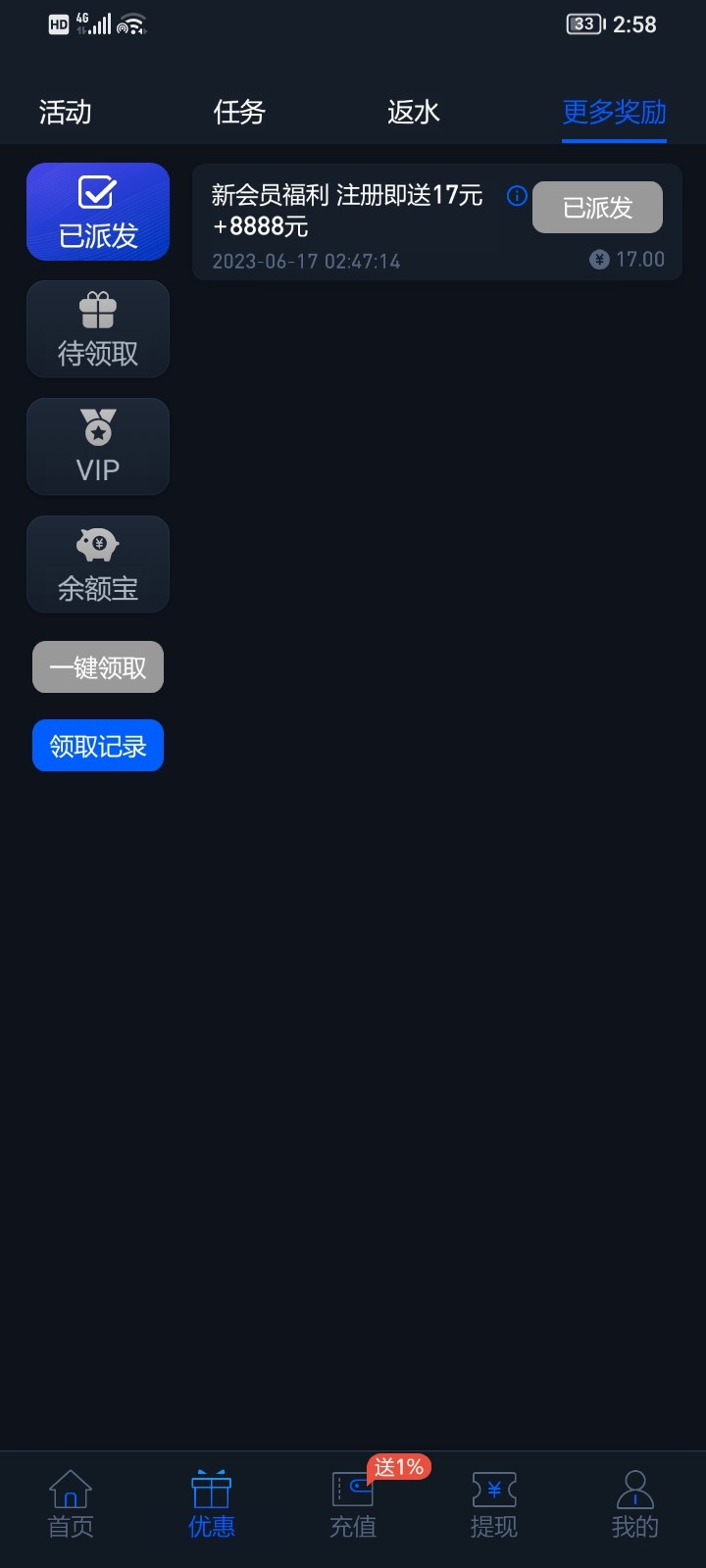 注册过没送的可以重新注册一个,换模板了我重新注册也送了,教大家一个好碰到的方法,先下载在注册然后完善信息后联系客服要,和他说注册彩金怎么还没到一系列反正自己发挥,我是多ip也送了,赶快去撸
